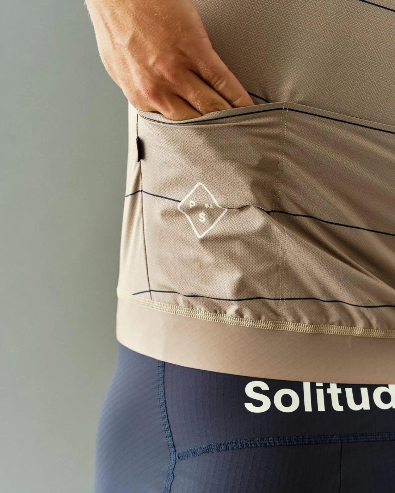 The Jersey offers easy access to pockets and a lowered armhole for comfort when positioned on the bike. The resilient sleeves effortlessly stretch into any shape to maintain an aerodynamic advantage. Free from any elastic grippers, we have eliminated all high-friction areas on these raw-edge sleeves. The Solitude jersey is constructed from proprietary fabrics developed for Pas Normal Studios. The microstructure of the main jersey fabric provides breathability and reduces clinging to your skin. Effectively eliminating the need for a base layer.