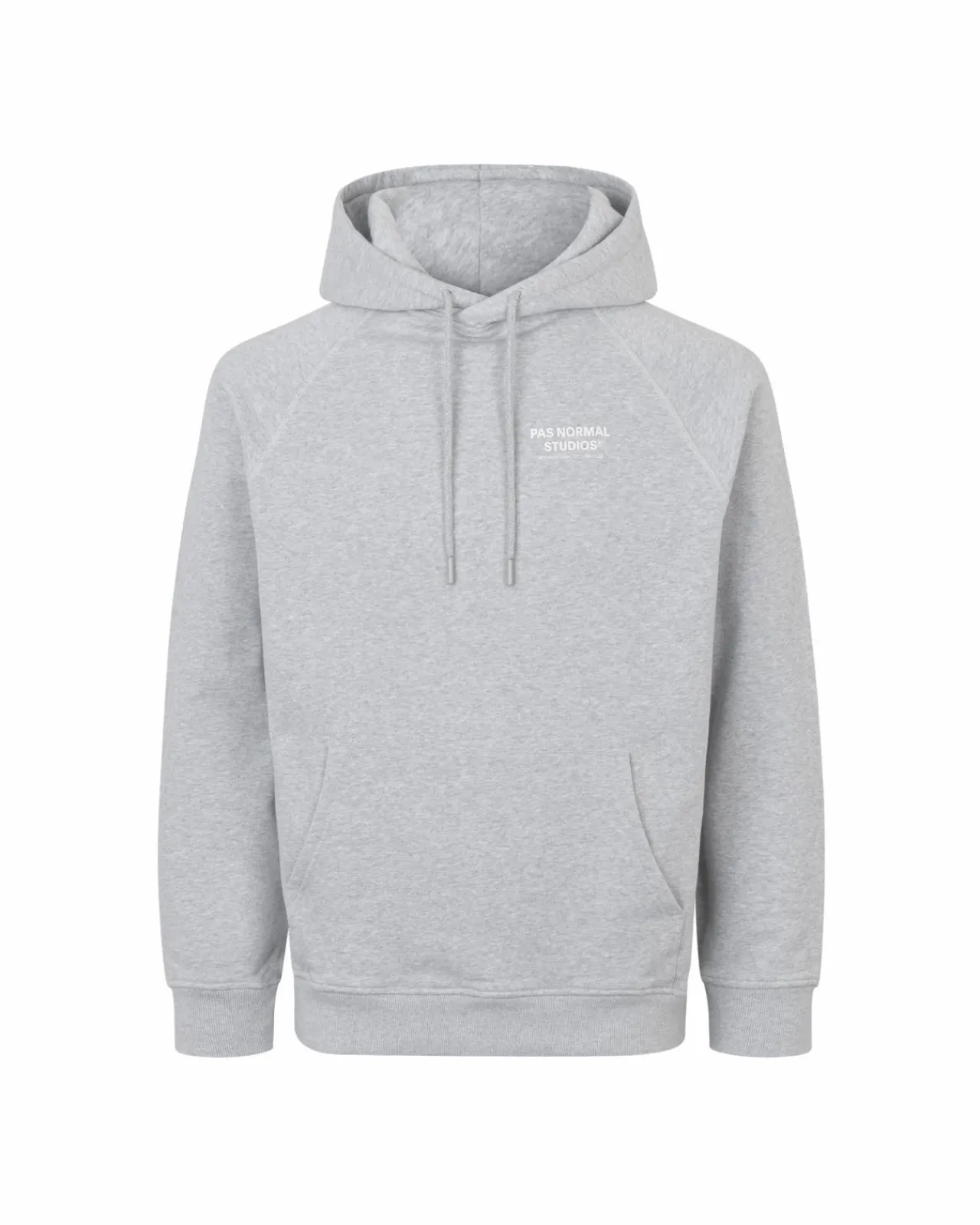 The Porter Off-Race Hoodie features a raglan sleeve design and a heavy-weight cotton fabric. Constructed from 320gsm Organic Cotton in Portugal. The hoodie is completed with a kangaroo pocket and drawstring adjustments to its hood for added comfort and functionality. Printed branding on the chest. A Pas Normal Studios printed logo is showcased on the chest of the hoodie. The hoodie features a large printed graphic and brand logos on the back.