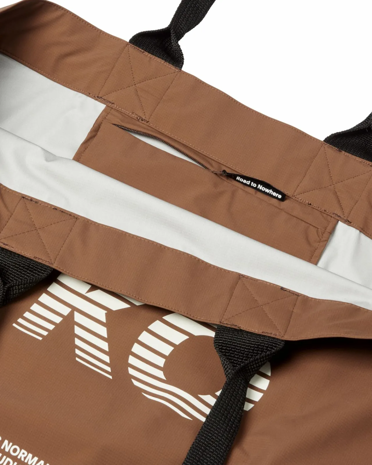 The T.K.O. Logo Shield Bag is constructed with the same Schoeller 3-layer fabric as some of our highly technical cycling gear. The 3-layer construction makes the fabric waterproof and will protect your belongings from light rain on the go. The bag has one big storage compartment and a smaller internal zippered pocket to keep your smaller essentials safe. The Shield Tote Bag has T.K.O. graphics on each side and a smaller minimalistic Pas Normal Studios logo.