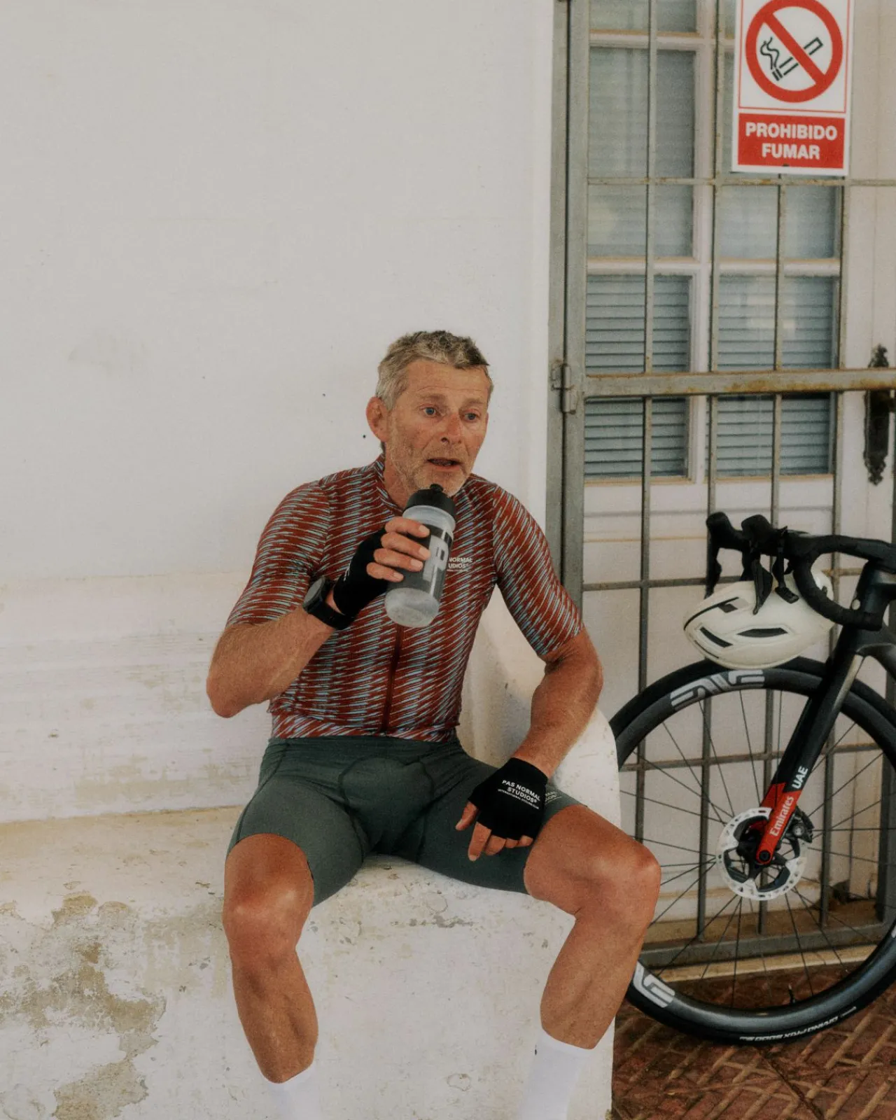 The Jersey offers easy access to pockets and a lowered armhole for comfort when positioned on the bike. The resilient sleeves effortlessly stretch into any shape to maintain an aerodynamic advantage. Free from any elastic grippers, we have eliminated all high-friction areas on these raw-edge sleeves. The Solitude jersey is constructed from proprietary fabrics developed for Pas Normal Studios. The microstructure of the main jersey fabric provides breathability and reduces clinging to your skin. Effectively eliminating the need for a base layer.