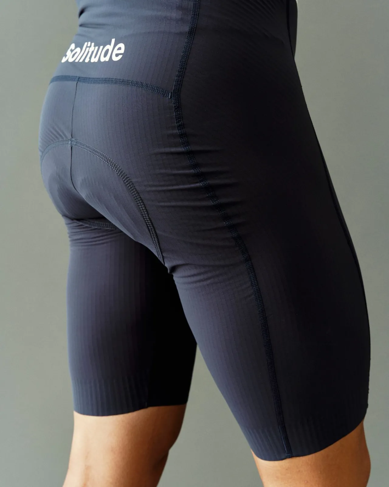 The Solitude Bibs are constructed from proprietary fabric developed for Pas Normal Studios. The bibs feature unique functional 3D pathways to create air channels to transport heat away from your body effectively. These channels cover the entire area from the hems to the back panel of the bibs, allowing air to circulate easily between your skin and the fabric. The Solitude bibs also provide breathability with the exposed polyester yarn on the inside of the bib shorts. The Solitude Bibs are updated with a new, taller striped silicone in the leg opening to distribute the grip better.